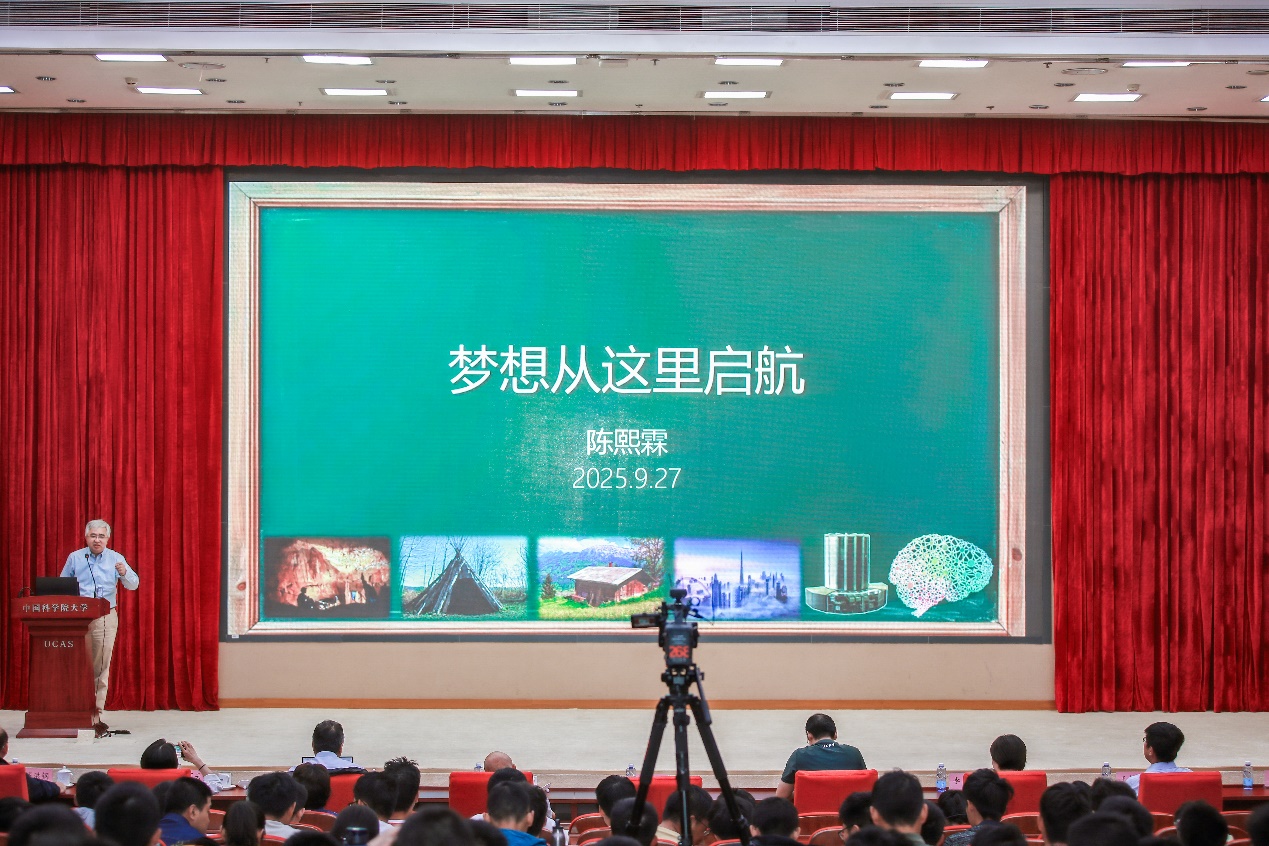 2025年9月27日計算所所長、黨委書記陳熙霖研究員在雁棲湖校區為計算機學院全體本科生帶來 一場充滿啟迪力量的“夢想啟航課”。